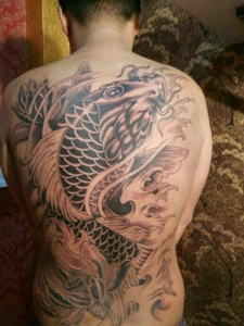 满背黑灰大鲤鱼纹身图案