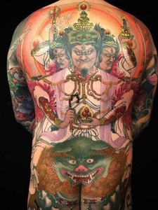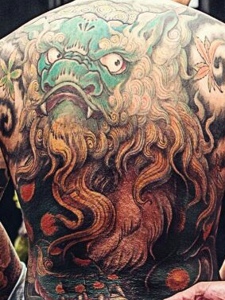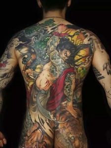 让人抓狂的夸张满背彩色图腾纹身刺青
