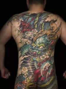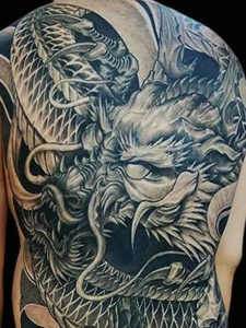 满背经典大邪龙纹身图案风度翩翩