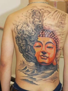 一款回头率爆表的满背金佛纹身图案
