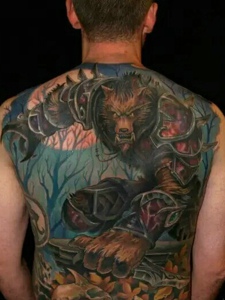 十分狂野的满背彩色图腾纹身刺青