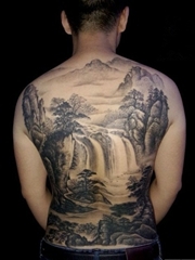 古典文化的继承,看这满背山水纹身