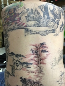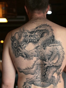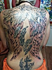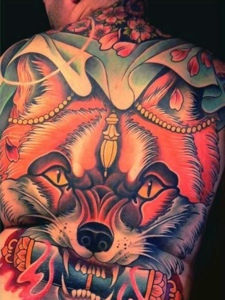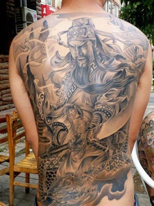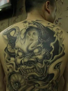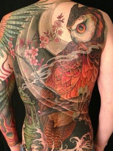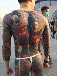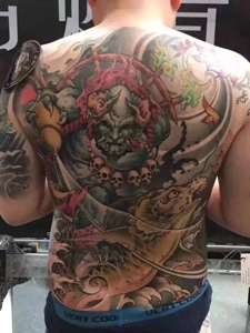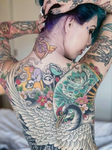 欧美女性满背彩色图腾纹身刺青很抢眼