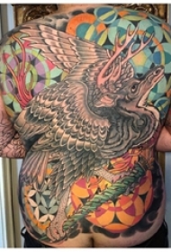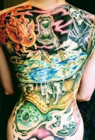 满背动物纹身 男生满背彩色的动物骨头纹身图片