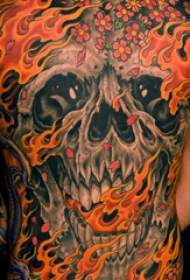 满背纹身图案 男生后背上火焰和骷髅纹身图片