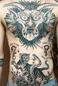 满背动物纹身 男生后背上黑灰的满背动物纹身图片