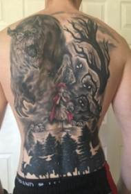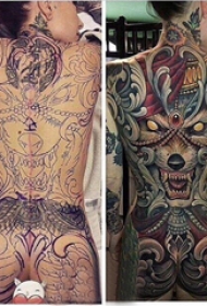 满背动物纹身 男生满背动物和人物肖像纹身图片
