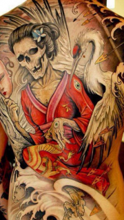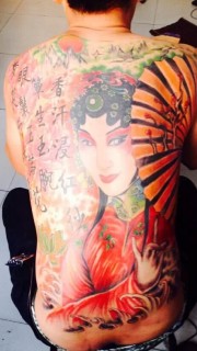 马来西亚美女纹身师kinki ryusaki后背美女纹身