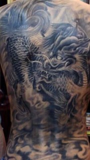 黑色满背龙神纹身