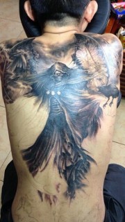 欧美风格的满背死神纹身