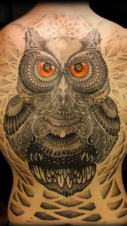 男士霸气满背的猫头鹰纹身