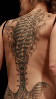 性感女孩背部个性骨骼纹身图案