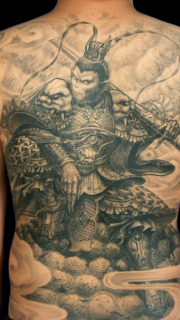 男生超酷的满背石雕不动明王纹身