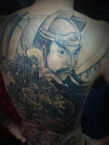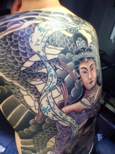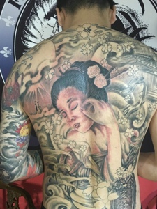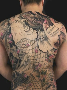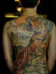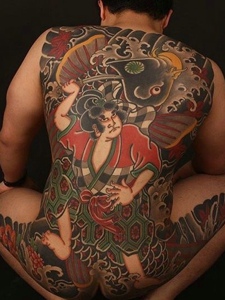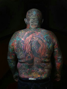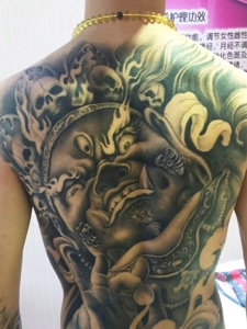 简直亮瞎双眼的满背彩色图腾纹身图案