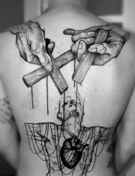 泼墨书法满背纹身 新传统风格纹身 无上出品