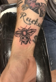 男生手腕纹身 男生手腕上黑色的蜜蜂纹身图片