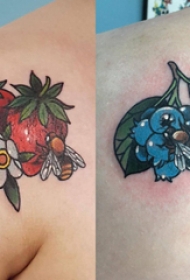 后肩纹身 女生后肩上植物和蜜蜂纹身图片