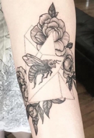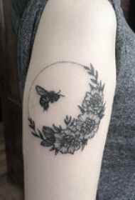 蜜蜂纹身图案 女生手臂上花卉和蜜蜂纹身图片