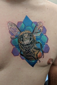 纹身胸部男 男生胸部蜂巢和蜜蜂纹身图片