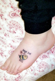 蜜蜂纹身图案 女生脚背上英文和蜜蜂纹身图片