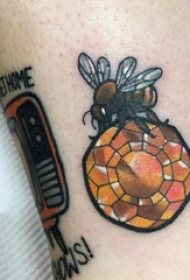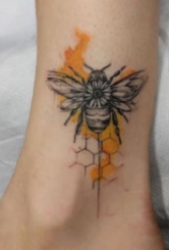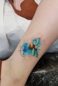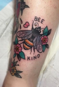 蜜蜂纹身图案 女生小腿上彩绘的蜜蜂纹身图片