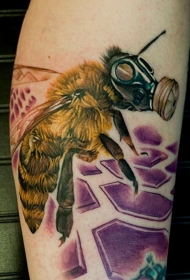 独特设计的彩色防毒面具蜜蜂手臂纹身图案