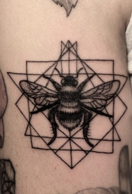 黑白点刺蜜蜂和几何饰品手臂纹身图案