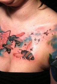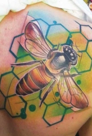肩部丰富多彩的蜜蜂和蜂窝纹身图案