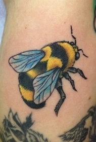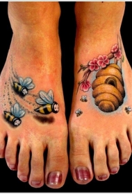 脚背可爱的蜜蜂飞向蜂巢纹身图案