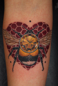 插画风格的彩色蜜蜂与珠宝手臂纹身图案
