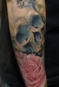 new school逼真的彩色骷髅玫瑰和小蜜蜂纹身图案