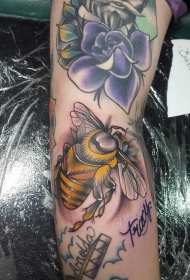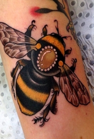 手臂上可爱的小蜜蜂彩色纹身图案