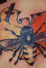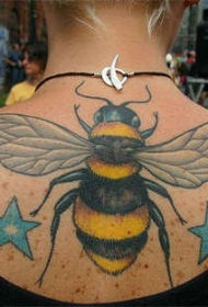 背部蜜蜂和两个蓝色的星星纹身图案