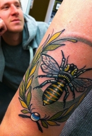 手臂彩色的蜜蜂和树叶纹身图案
