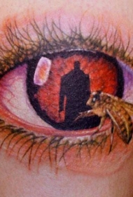腿部彩绘神秘的眼睛与蜜蜂纹身图案