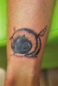 小腿可爱的彩色蜜蜂纹身图案