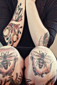 膝盖彩绘的蜜蜂纹身图案