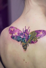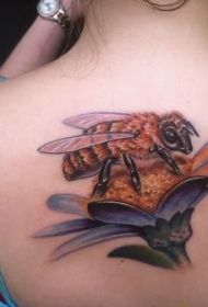 背部蜜蜂坐在花朵上纹身图案