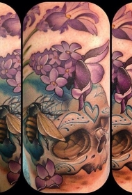 美丽彩色骷髅结合花卉和蜜蜂纹身图案
