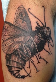 大臂点刺风格黑色蜜蜂饰品纹身图案