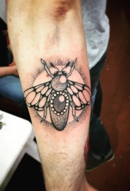 手臂黑色点刺风格蜜蜂与珠宝纹身图案