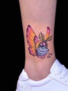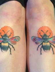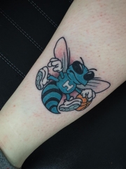 小腿彩绘欧美卡通蜜蜂纹身图案