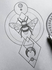 school 几何蜜蜂月亮tattoo纹身图案手稿
