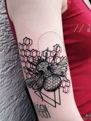 大臂欧美蜜蜂蜂巢几何个性tattoo纹身图案