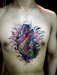 两款针三味的胸部纹身作品