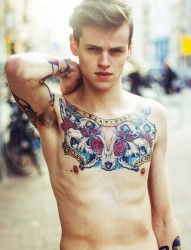 男士胸部个性时尚的纹身图案