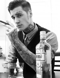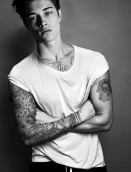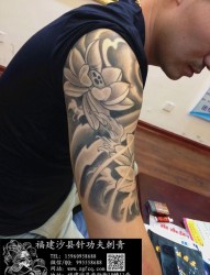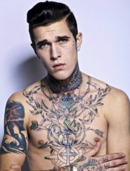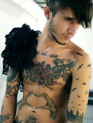 时尚阳光的欧美帅哥的图腾半甲纹身
