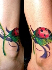 可爱逼真的彩色瓢虫脚踝纹身图案