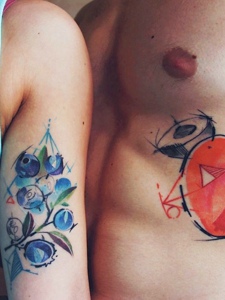 色彩诱人的苹果与葡萄的情侣纹身图案
