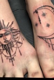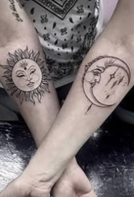 日月纹身--很适合情侣的太阳月亮的成对日月纹身图案